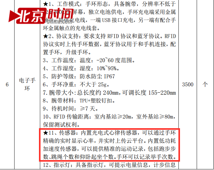 他表示,招标文件内容的措辞容易让人产生误解。实际上,采购的电子手环与市面的手环功能是一模一样的,与NFC消费功能一样。