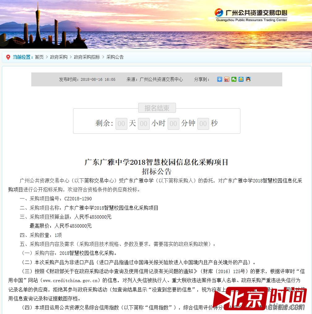 近日,广东广雅中学的一则广雅中学智慧校园信息化采购项目中标结果公告”引起热议。网友质疑该校花费485万元采购学生电子手环,认为手环的定位、监控等功能侵犯学生隐私和人权。3月6日,@时间视频联系上负责采购的黄老师,他称本次采购的手环早在北京、杭州多校使用。手环主要用于替代一卡通功能。